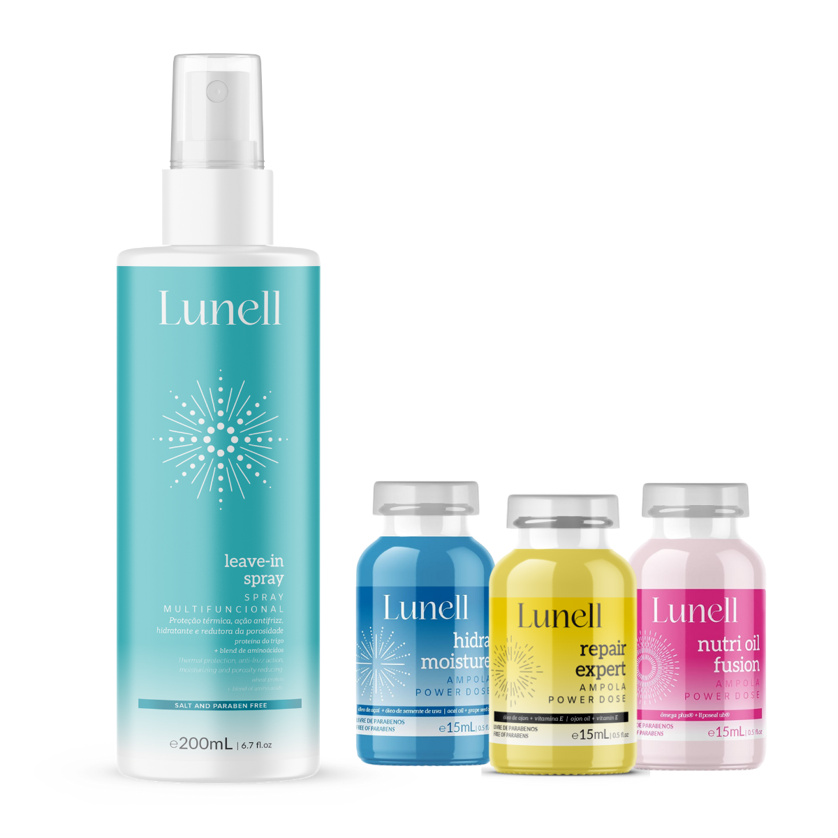 Kit Cronograma Capilar Lunell + Leave-in Spray Multifuncional Antifrizz (4 Produtos)